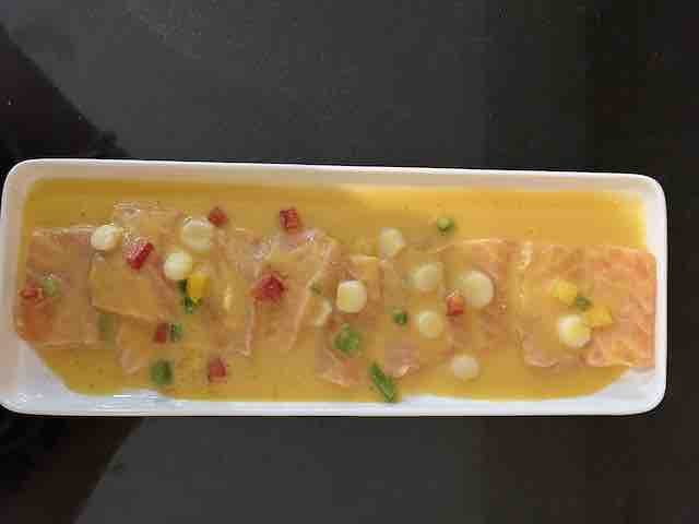 Les Tiraditos, sashimi de Saumon, du chef de MAD about Perù sont excellents et d’une grande douceur en bouche avec la sauce au fruit de la passion. Nous recommandons fortement cette entrée qui ouvre le palais et l ‘esprit à la cuisine péruvienne.